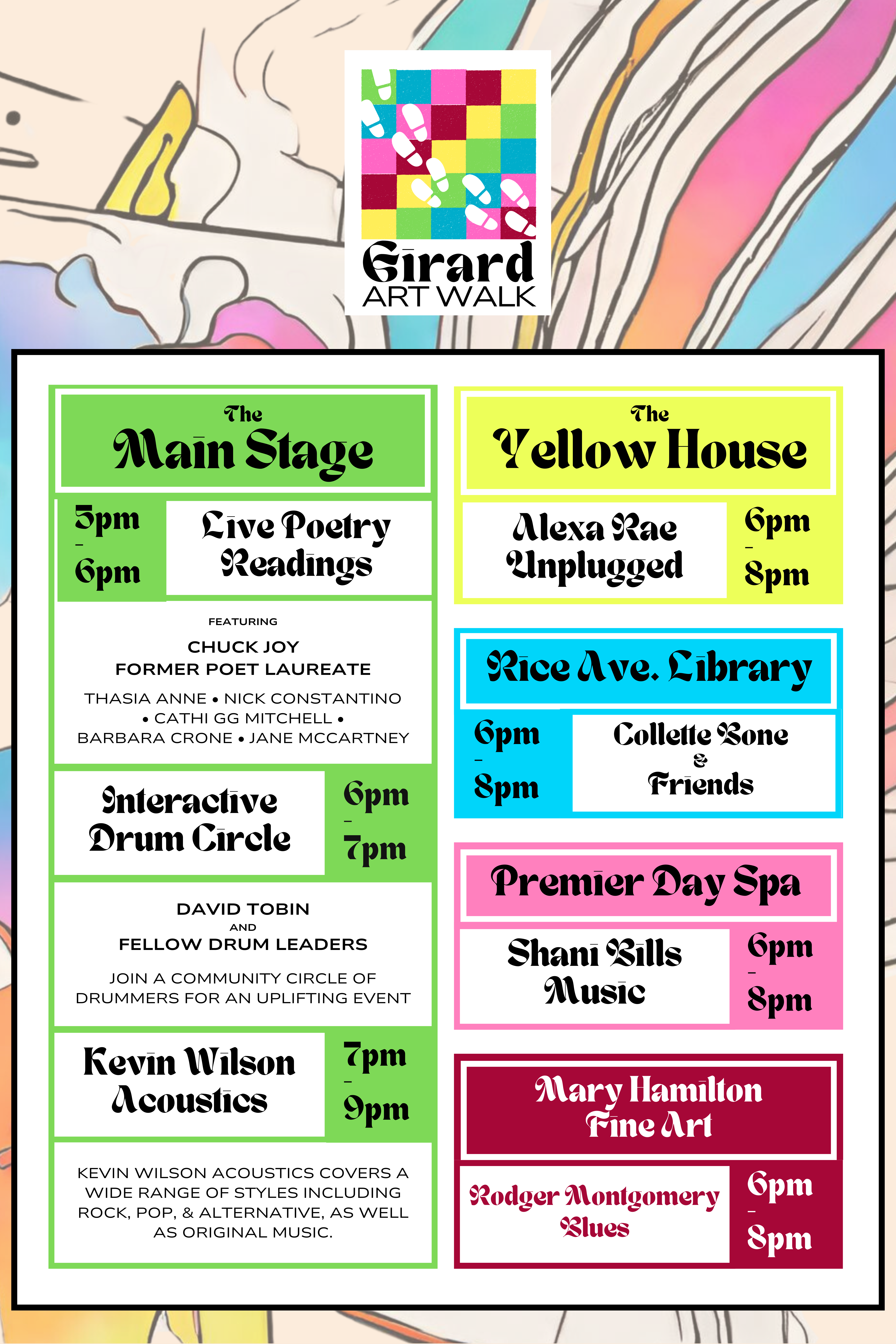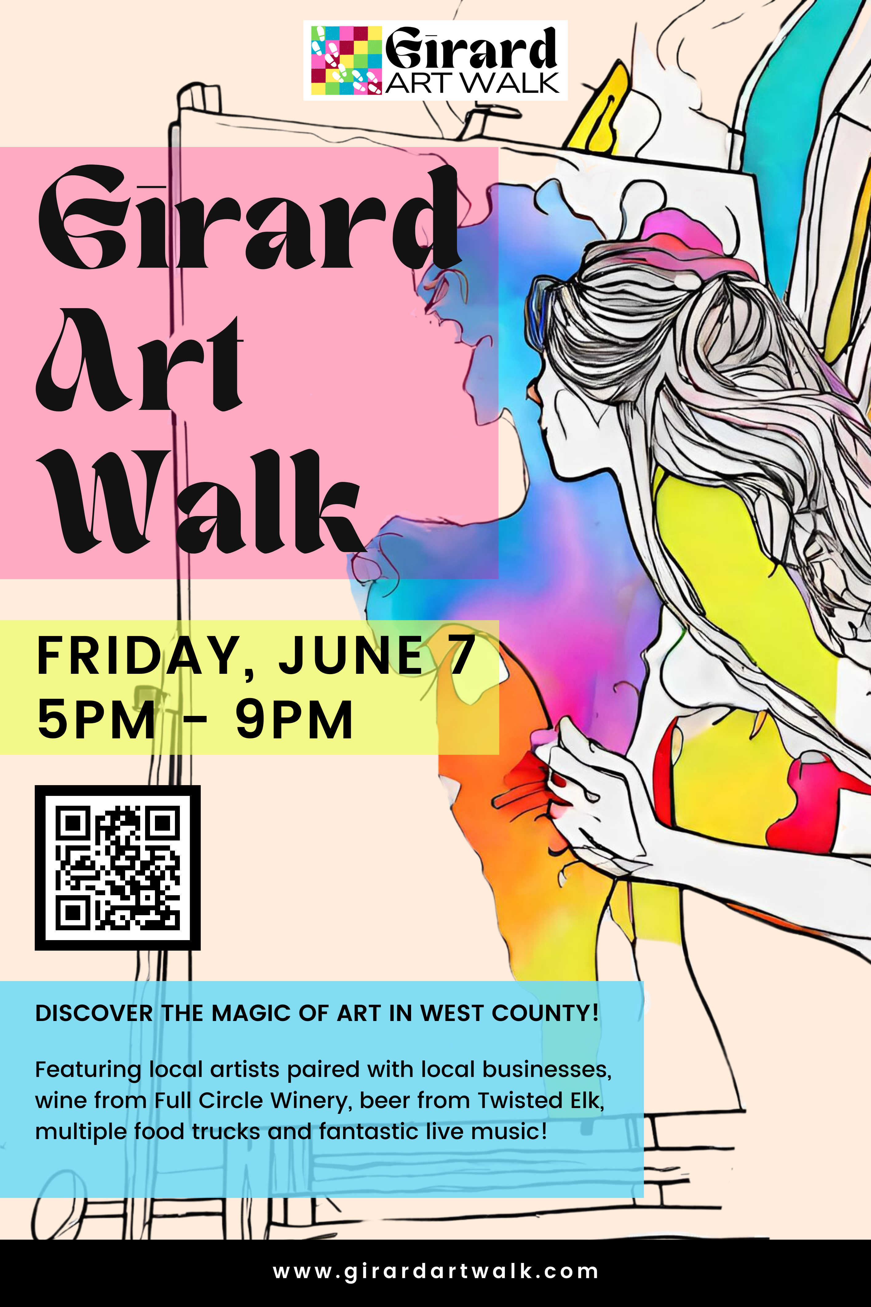 The images below are the flyers, banners and promotional print imagery for the 2024 Girard Art Walk. Please feel free to print for use in your business or save to use on your website or social media to promote the 2024 Girard Art Walk.